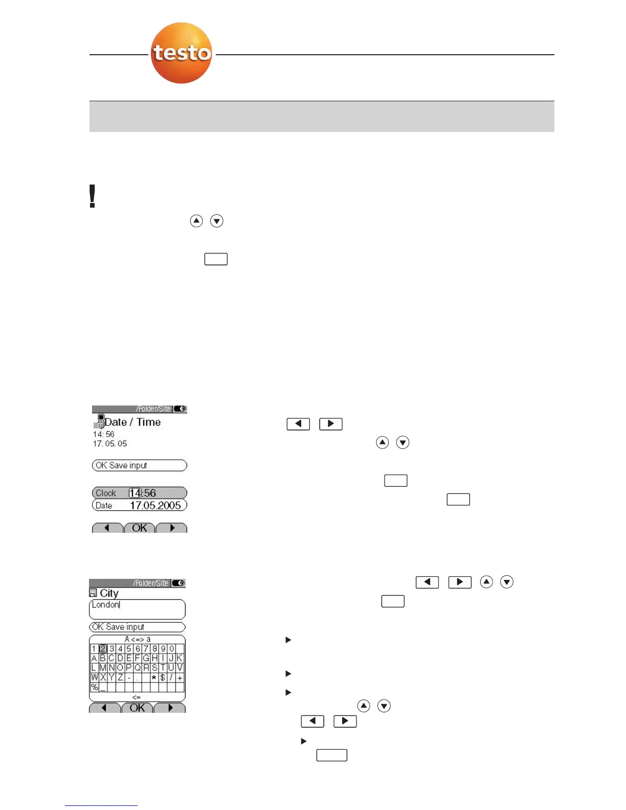 Some functions require values (numbers, units, characters) to be entered. Depending