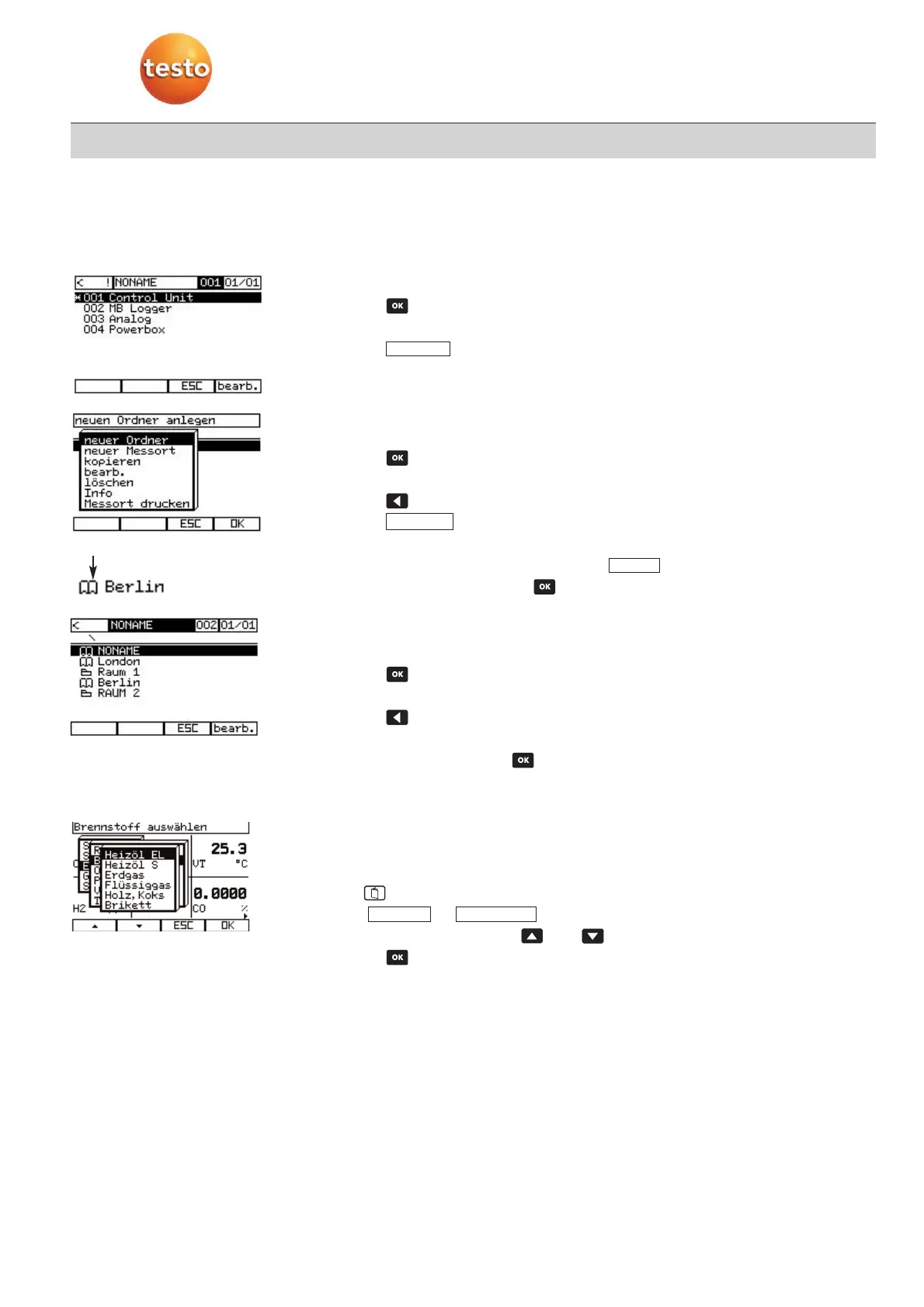 Man erhält eine Übersicht über die gespeicherten Messorte und Ordner.