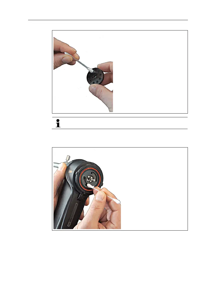 6. Clean the stator disc using a moistened cotton bud and rub dry