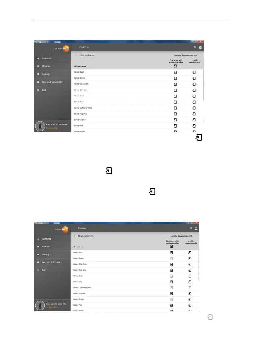If the data transfer to the testo 400 was successful, the icon changes to .