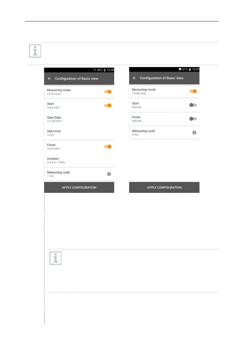 For the continuous measurement, a start time, a measurement duration