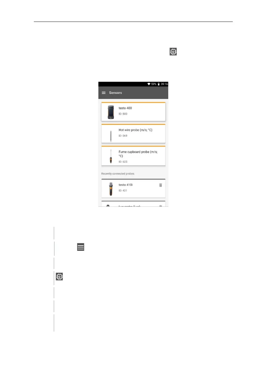 All sensors that the testo 400 uses can be found in the Sensors menu.