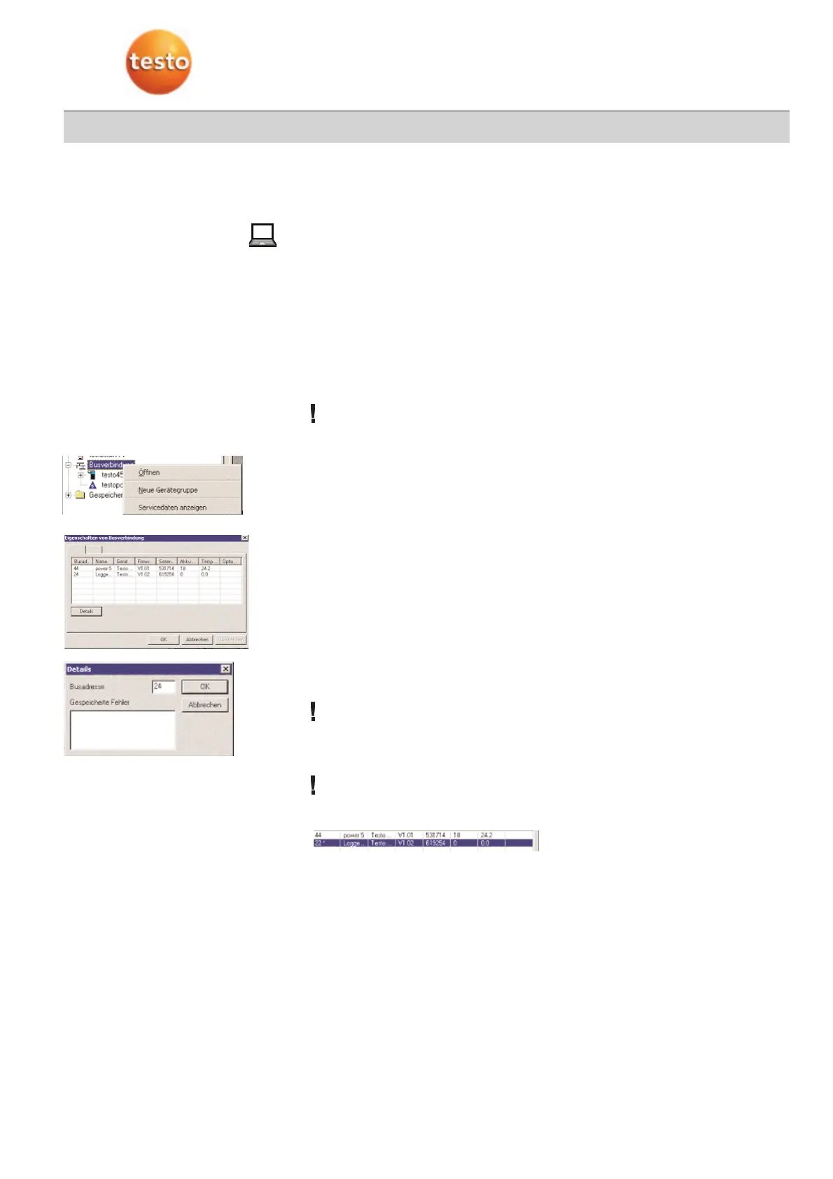 Testo-Datenbus mit der Comsoft verbunden sind, werden aufgelistet.