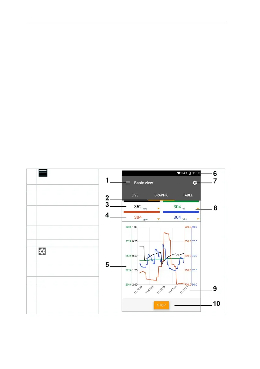 In the Graphic view, the values for a maximum 4 channels can be displayed