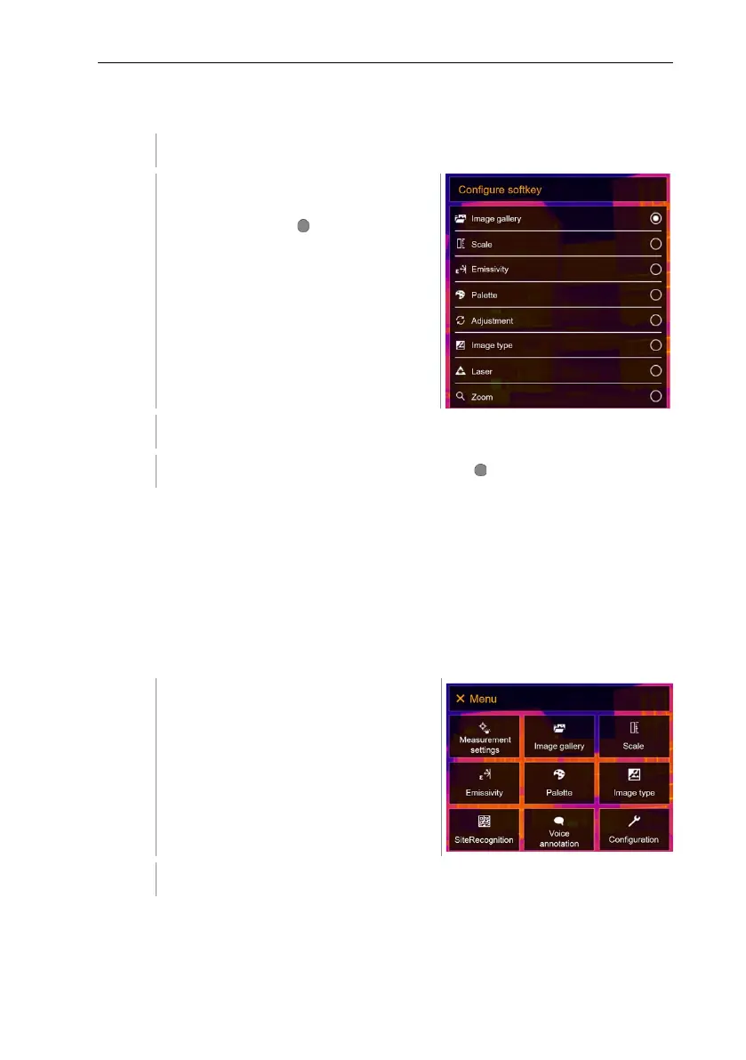 Select the required menu item (joystick or touchscreen).