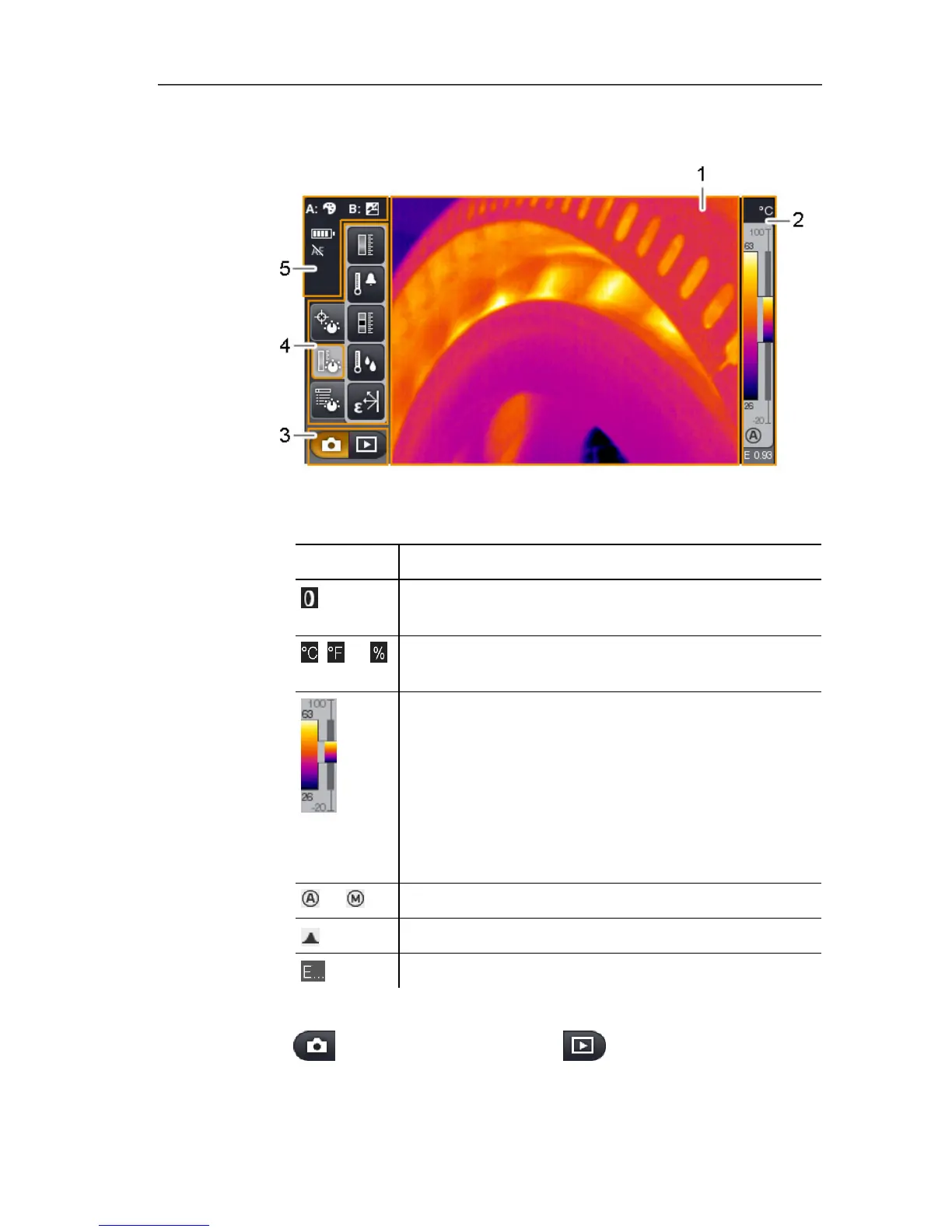 Right: temperature margin of the image displayed,