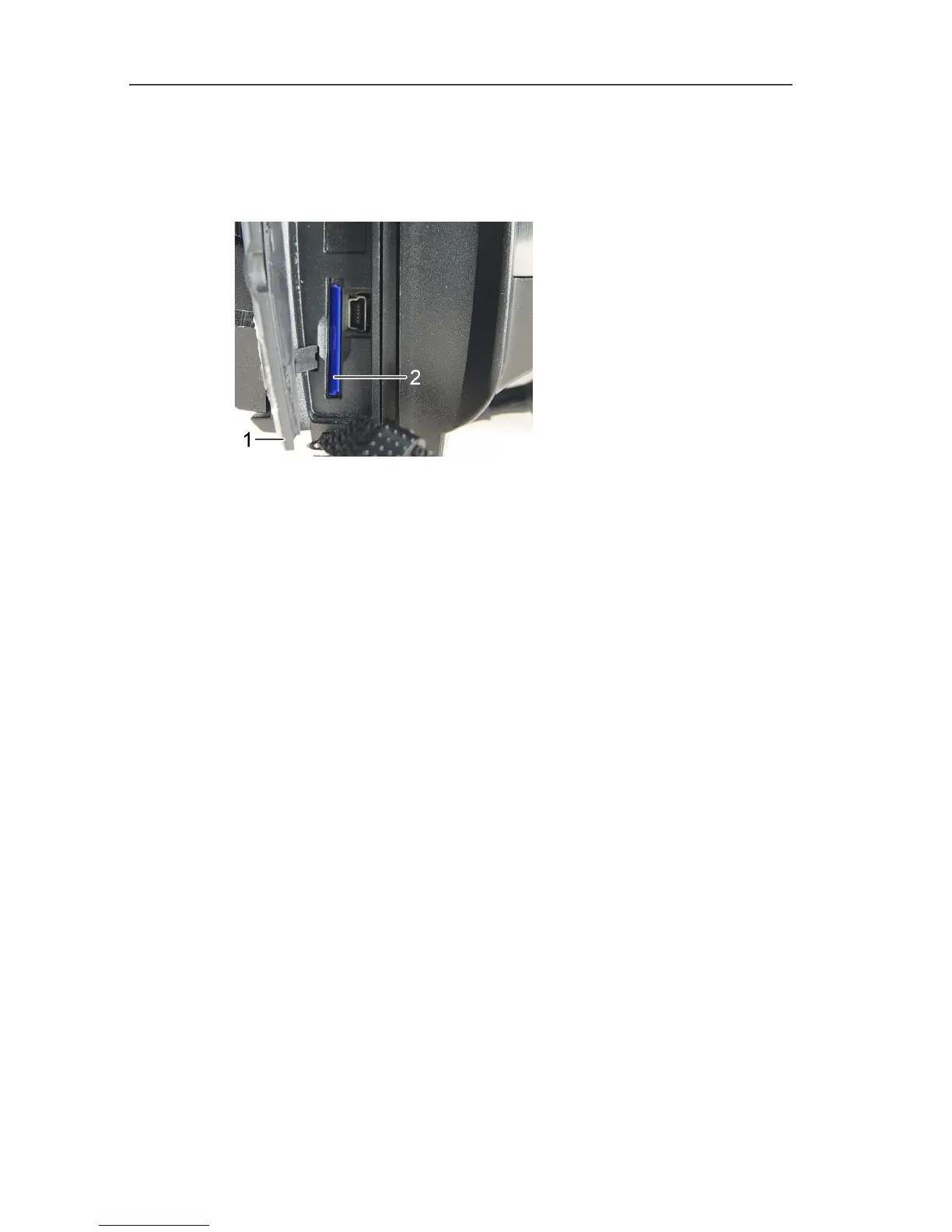 2. Push the memory card (SD or SDHC card) into the card slot (2).
