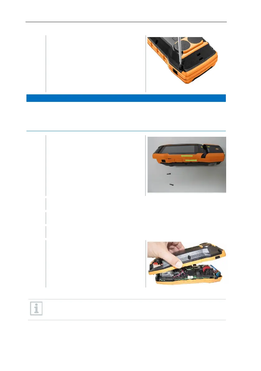 - Only remove the two housing screws on the top of the instrument. The