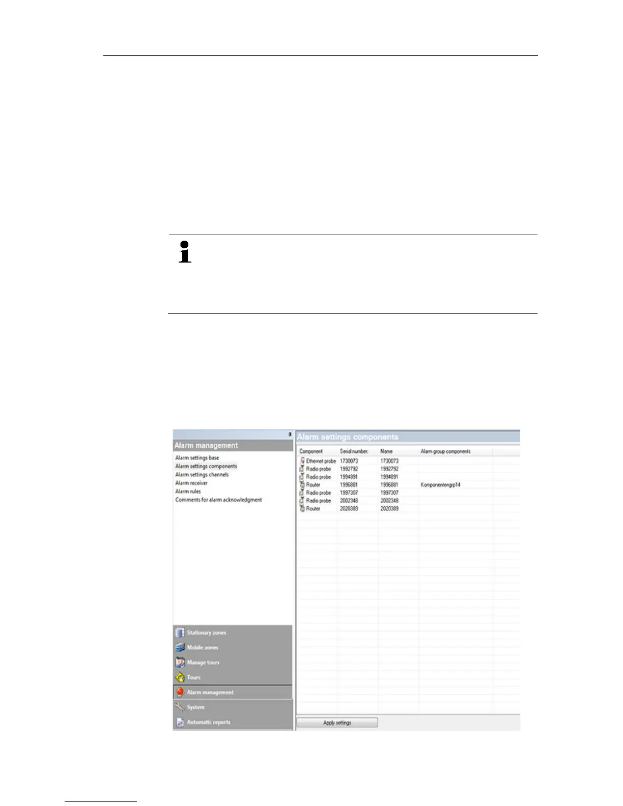 1. Click on Alarm management in the navigation area.