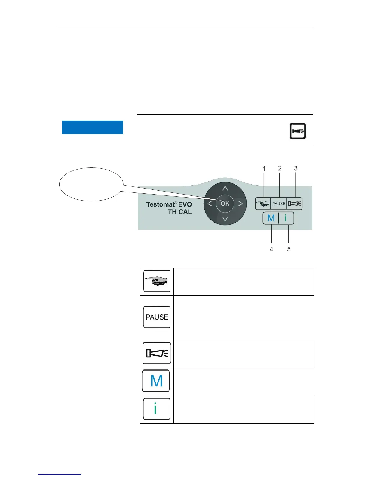 The flashing LED indicates the activated pause.