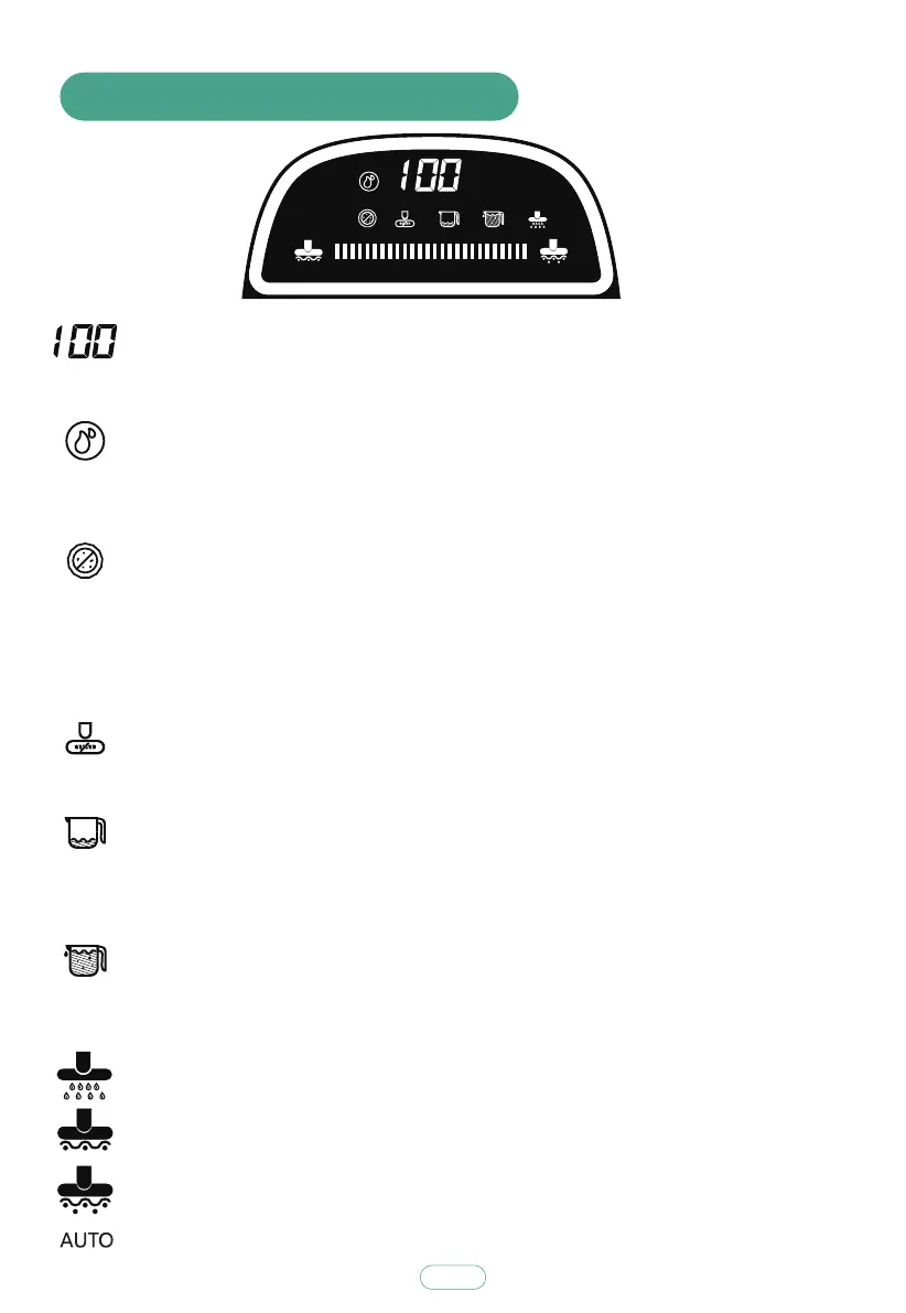 Auto-washing mode: The icon illuminates under auto-washing mode.