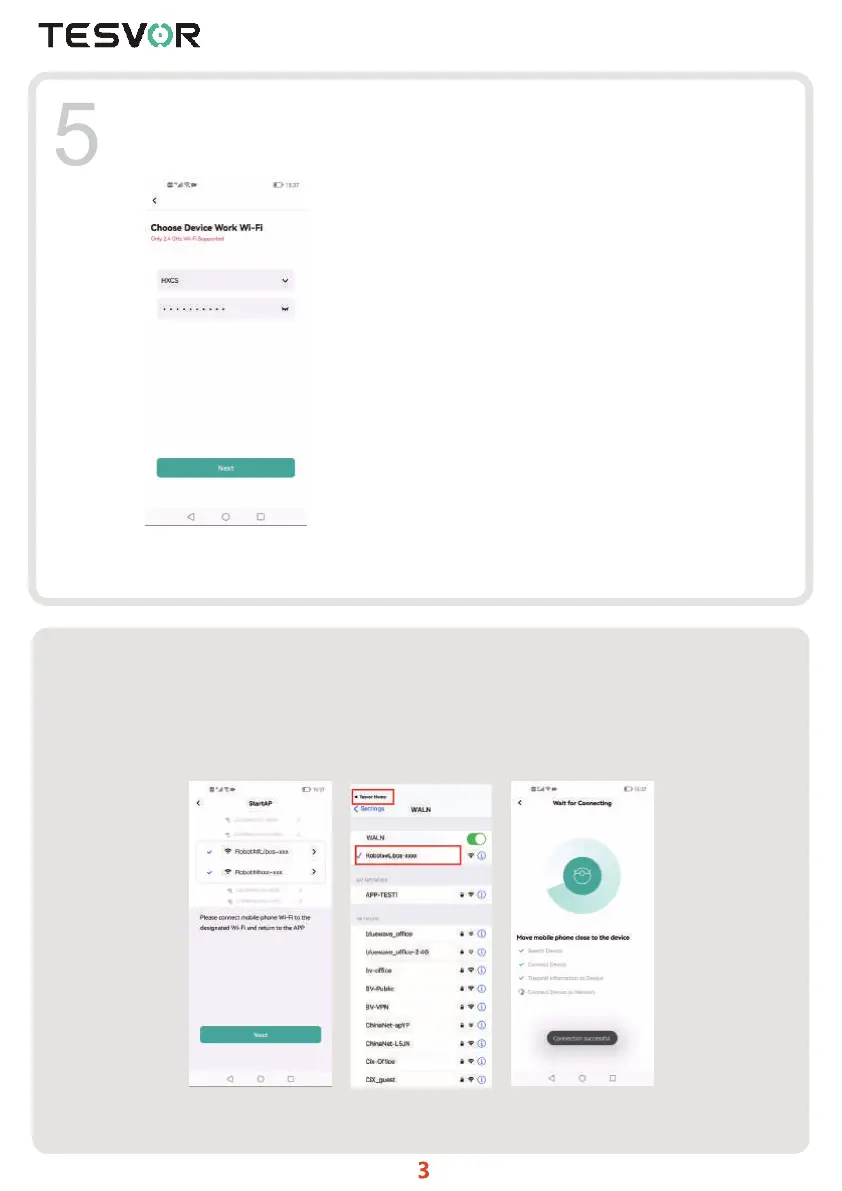 Select the working Wi-Fi of the robot (only support 2.4Ghz Wi-Fi, Wi-Fi name does not