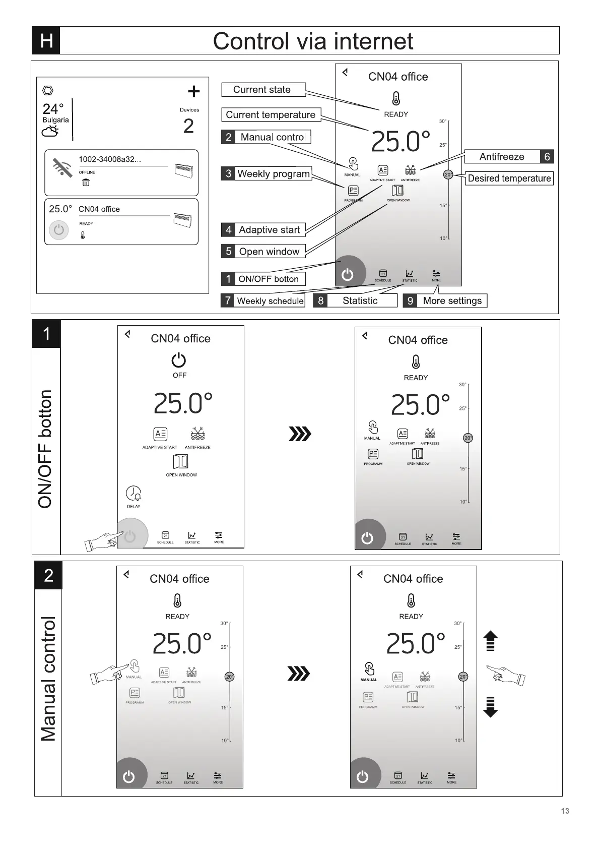 TESY 19-21 - Control via Internet; Basic Device Operations (ON;OFF, Manual)