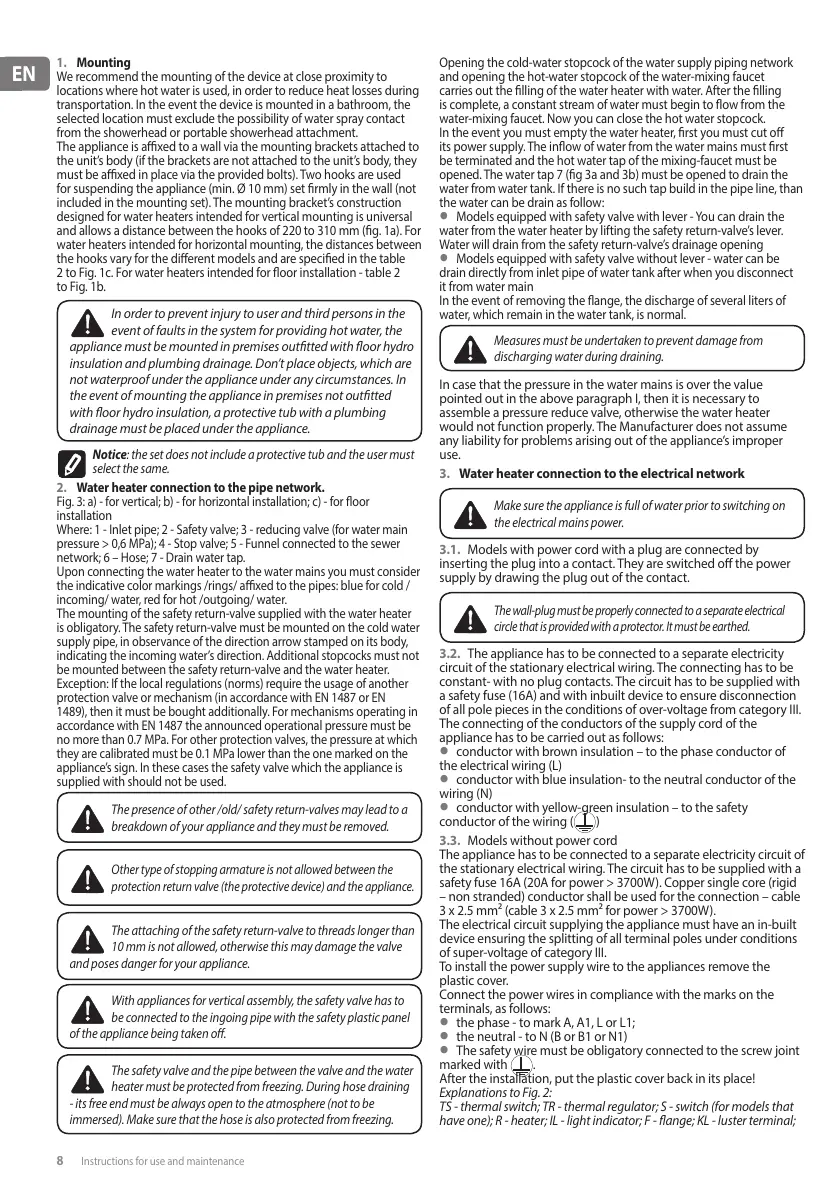 2 to Fig. 1c. For water heaters intended for oor installation - table 2