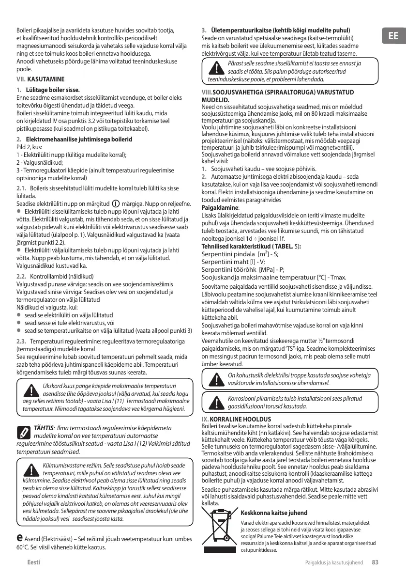 Boileri pikaajalise ja avariideta kasutuse huvides soovitab tootja,