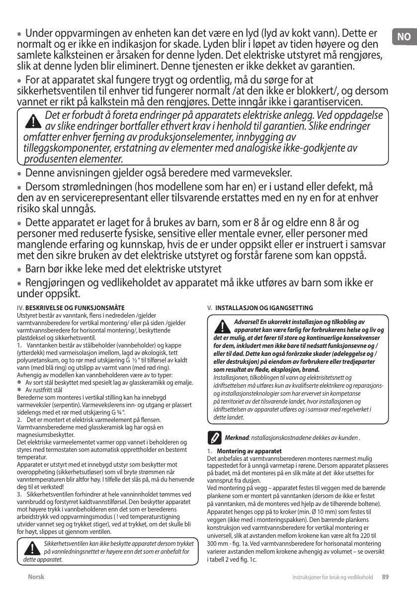 Norsk Instruksjoner for bruk og vedlikehold 89