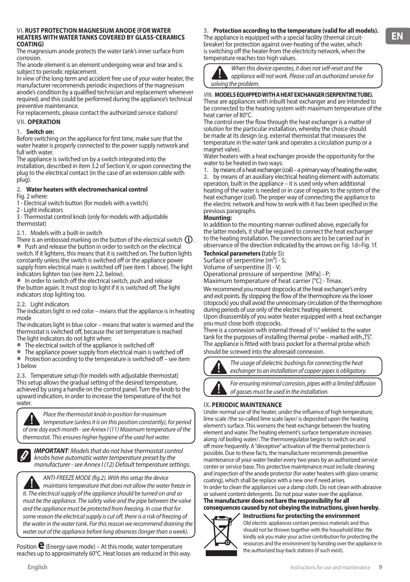 and inspection of the anode protector (for water heaters with glass-ceramic