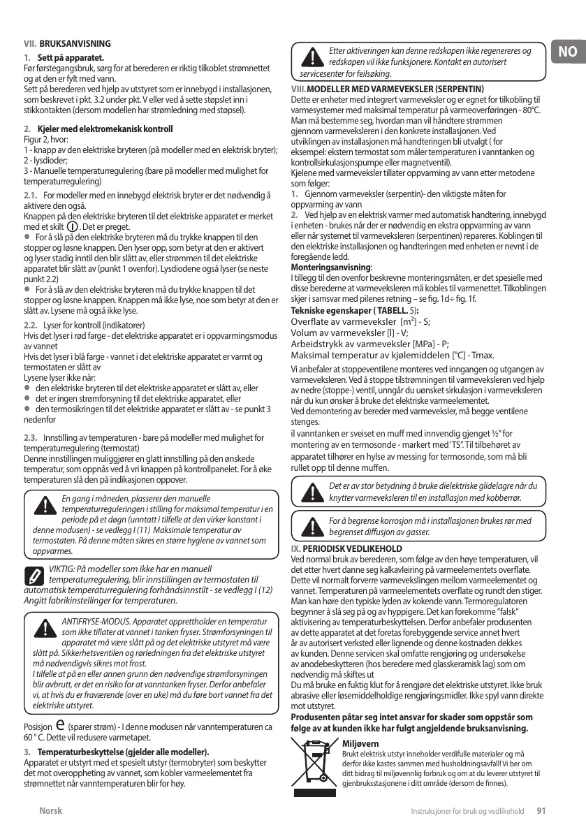 Norsk Instruksjoner for bruk og vedlikehold 91