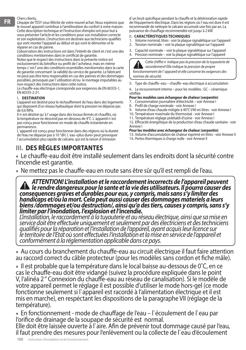 100 Instruction d’installation et de fonctionnement