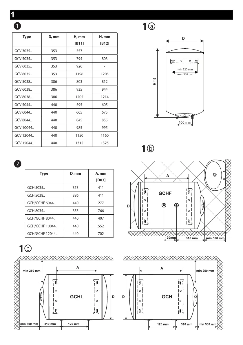 Type D, mm H, mm