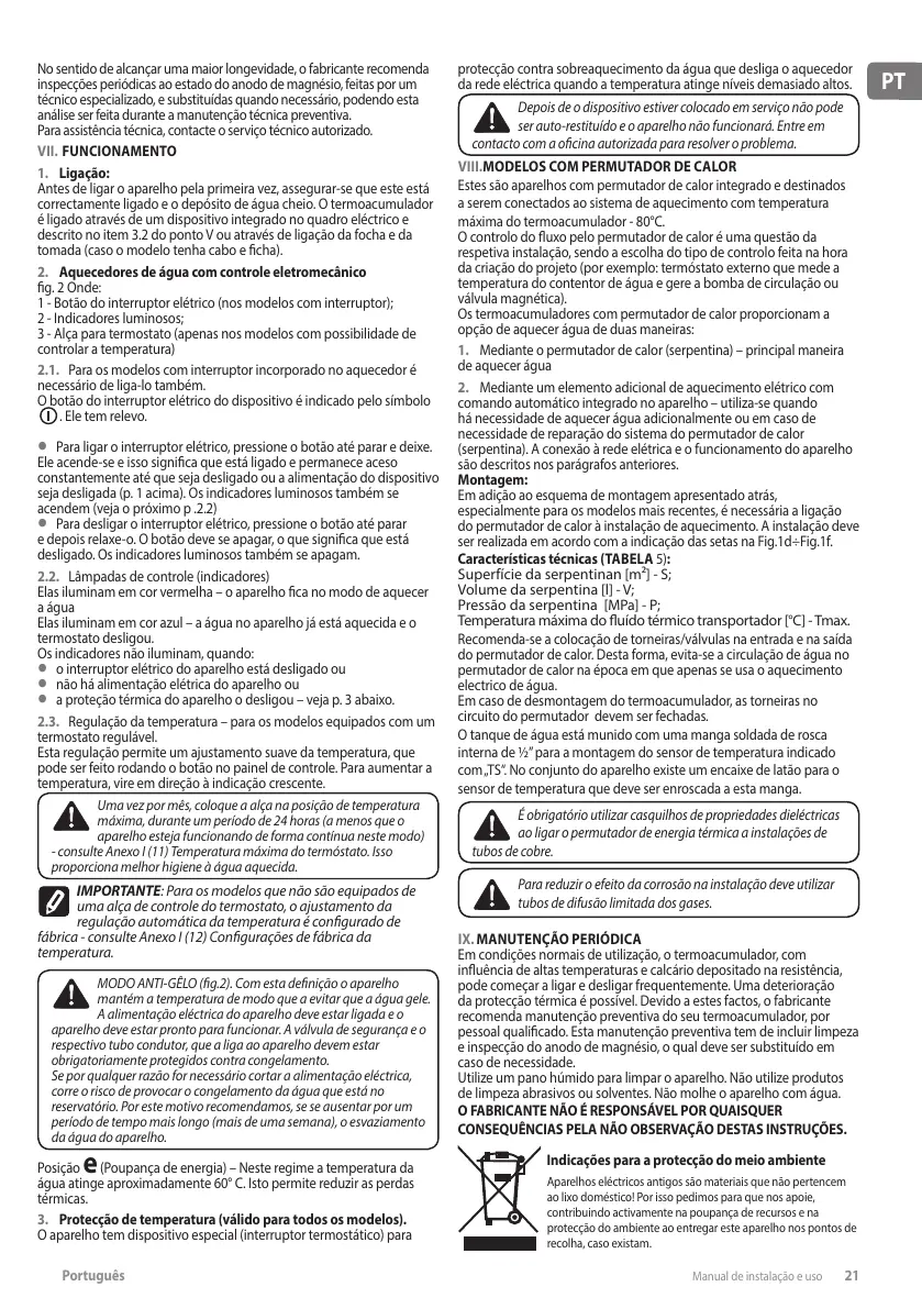 - consulte Anexo I (11) Temperatura máxima do termóstato. Isso