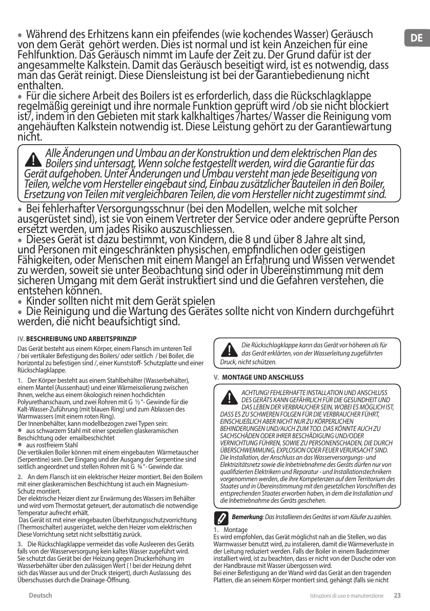 ACHTUNG! FEHLERHAFTE INSTALLATION UND ANSCHLUSS