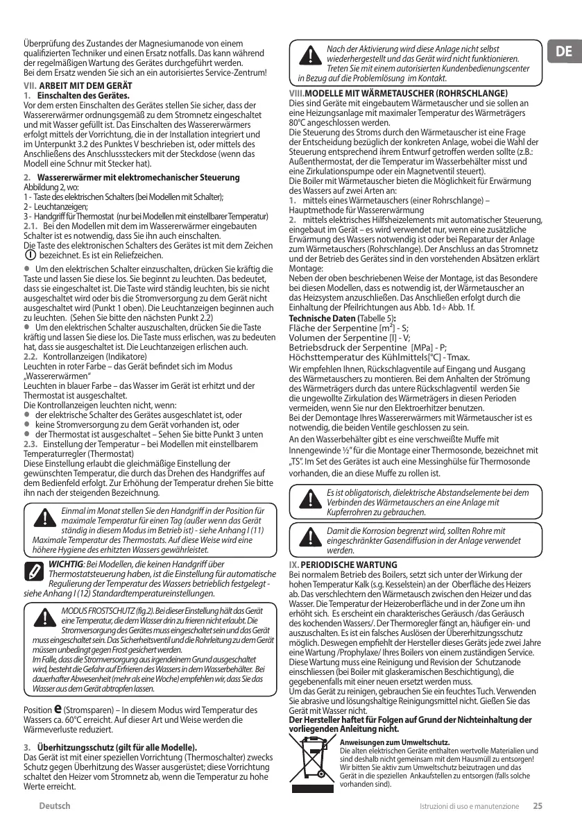 2.1. Bei den Modellen mit dem im Wassererwärmer eingebauten