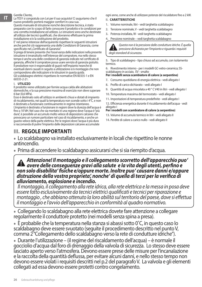1. Volume nominale, litri - vedi targhetta scaldabagno