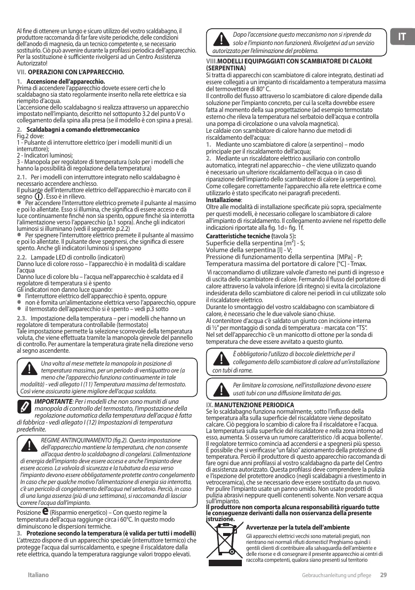 Al ne di ottenere un lungo e sicuro utilizzo del vostro scaldabagno, il