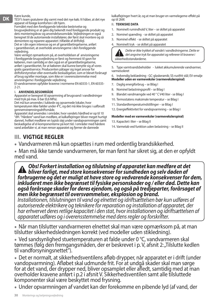 Vandvarmeren må kun opsættes i rum med ordentlig brandsikkerhed.