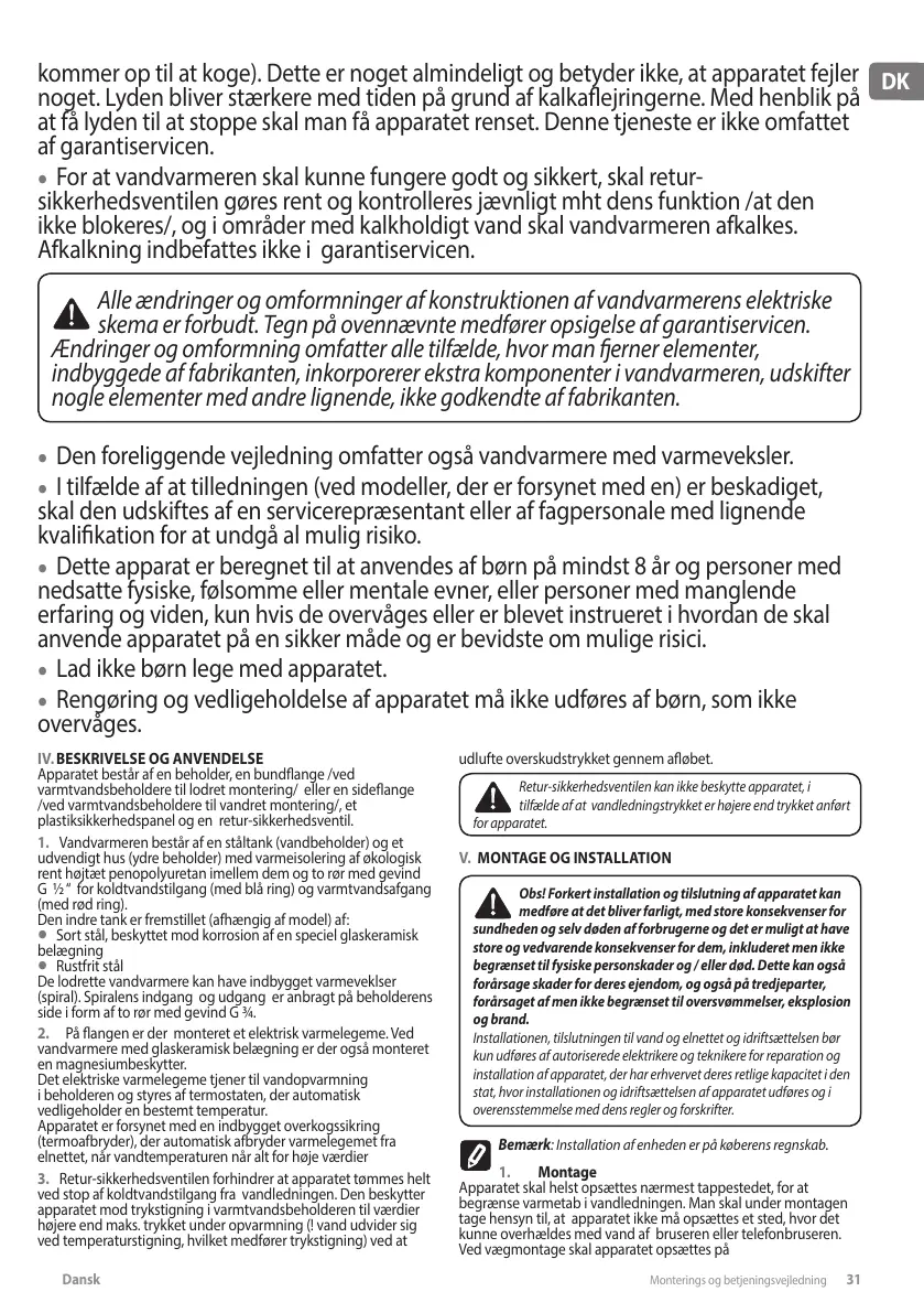 Dansk Monterings og betjeningsvejledning 31