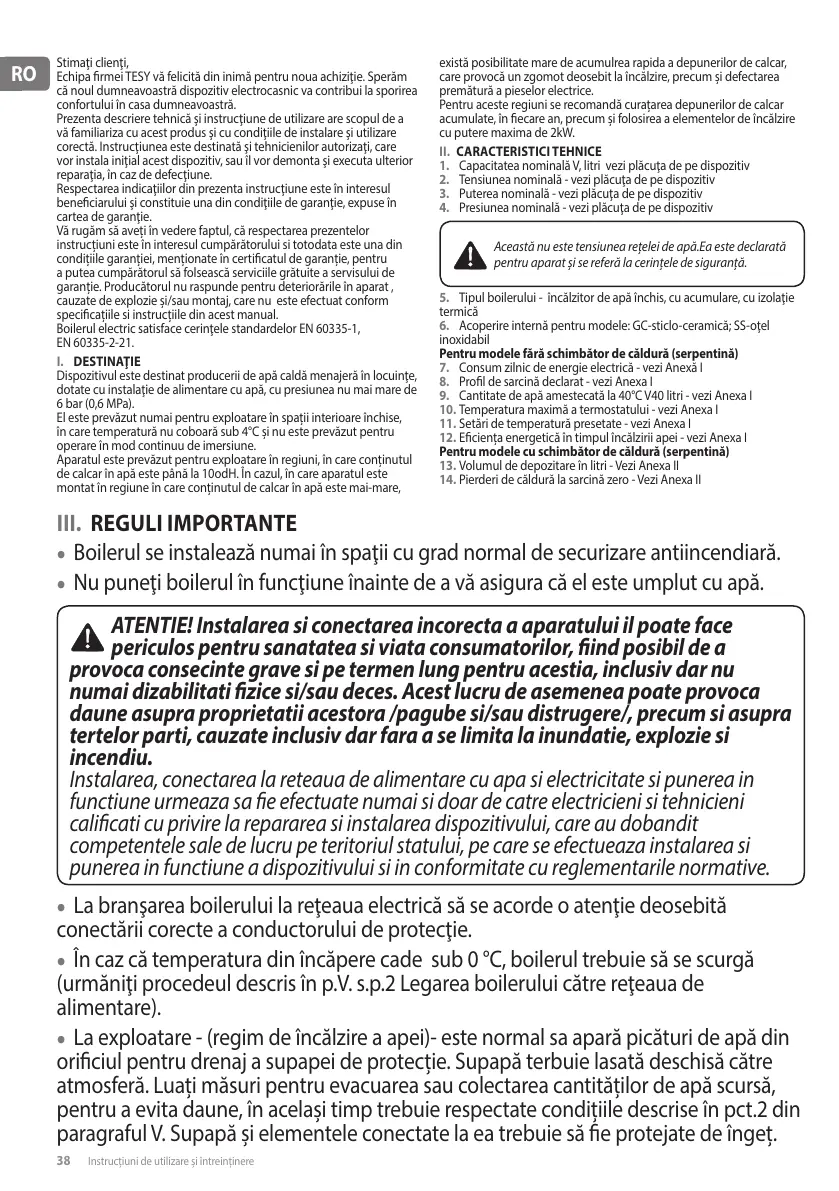 Boilerul electric satisface cerinele standardelor EN 60335-1,