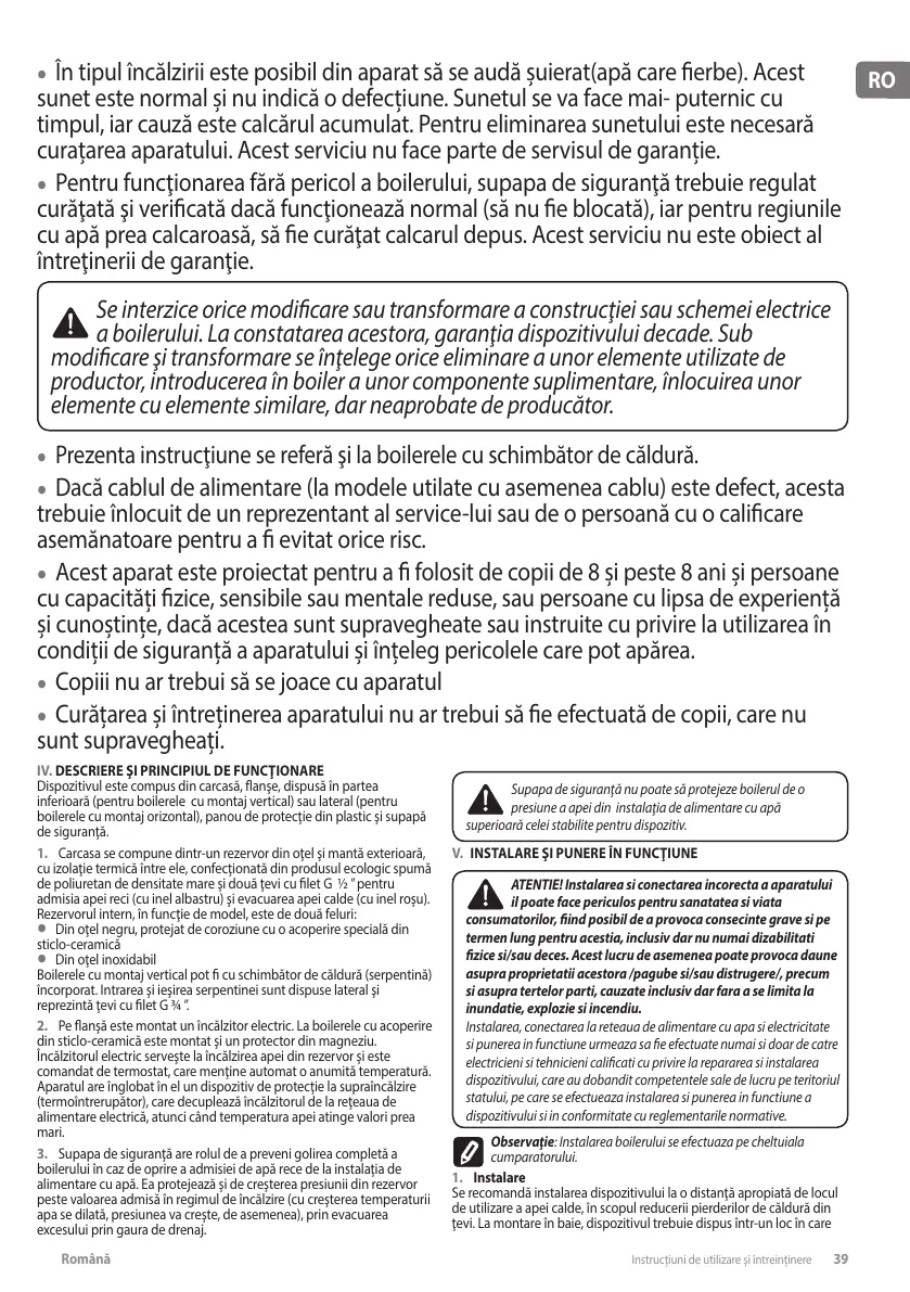 a boilerului. La constatarea acestora, garanţia dispozitivului decade. Sub