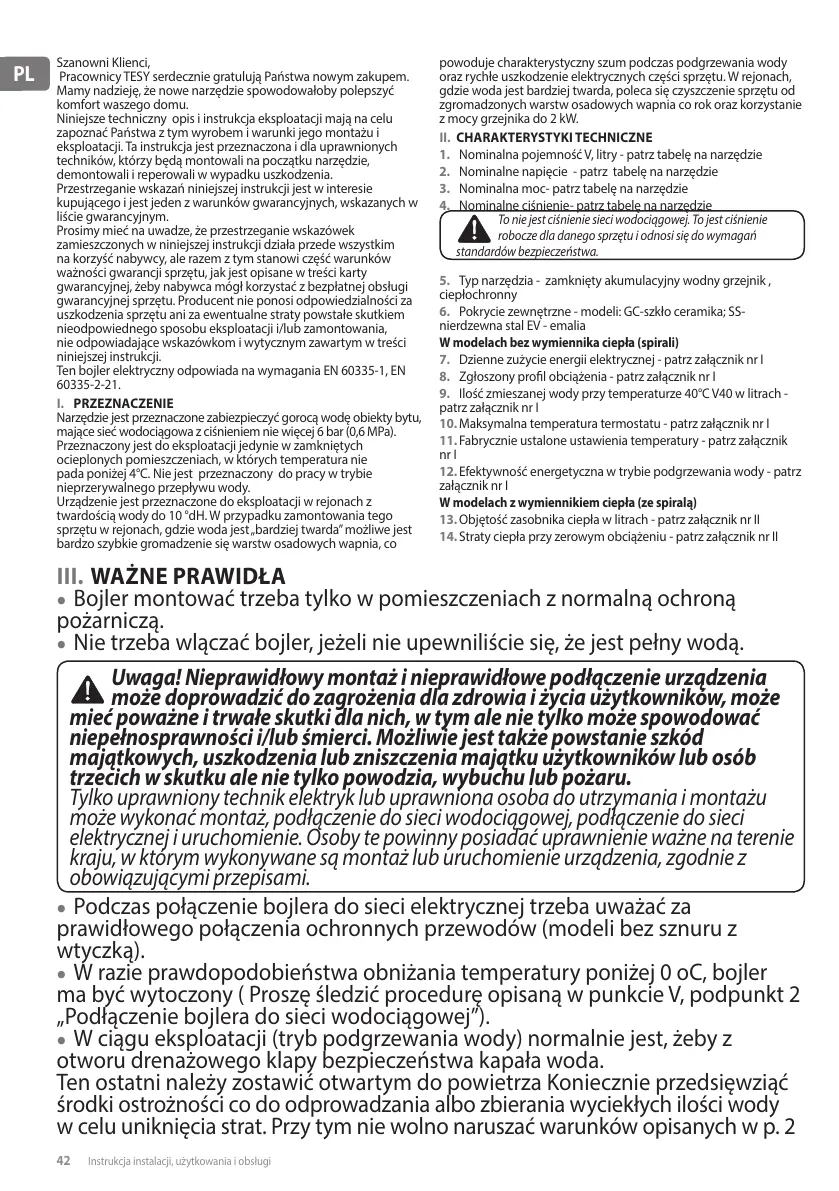 42 Instrukcja instalacji, użytkowania i obsługi