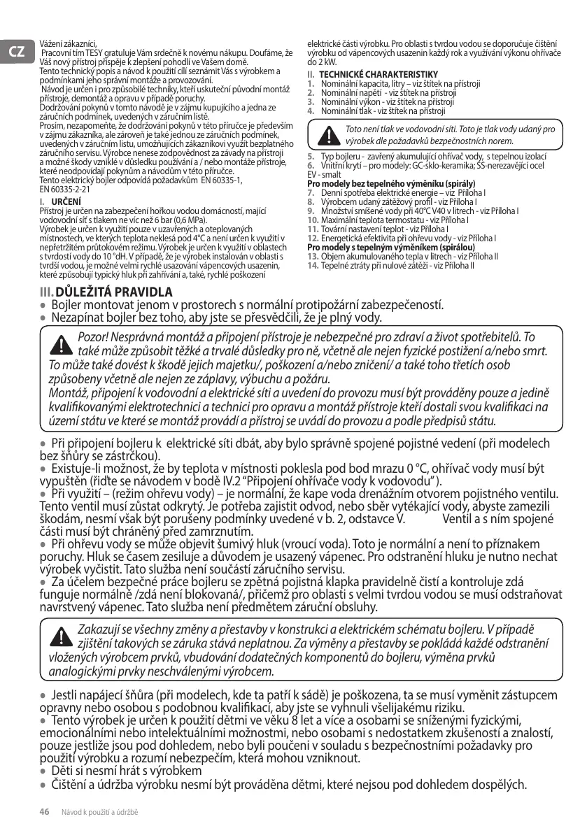 Tento elektrický bojler odpovídá požadavkům EN 60335-1,