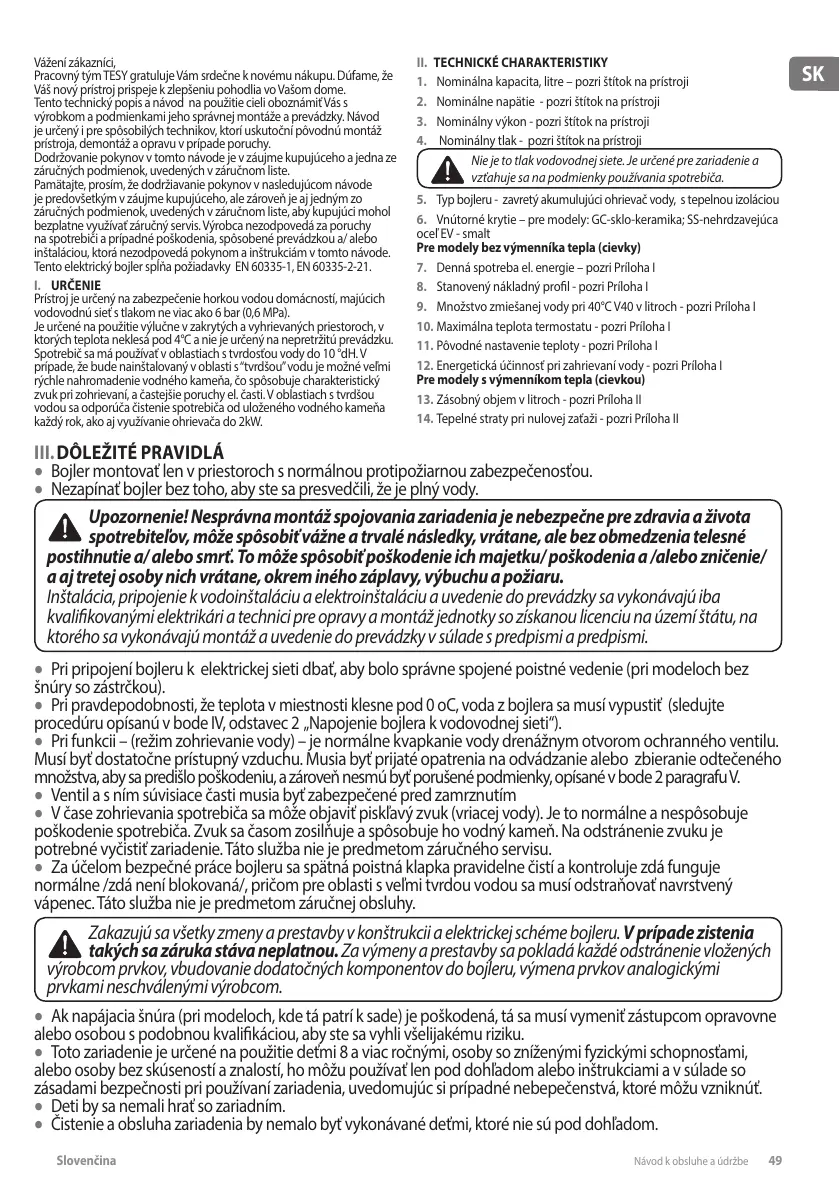 Tento elektrický bojler spĺňa požiadavky EN 60335-1, EN 60335-2-21.
