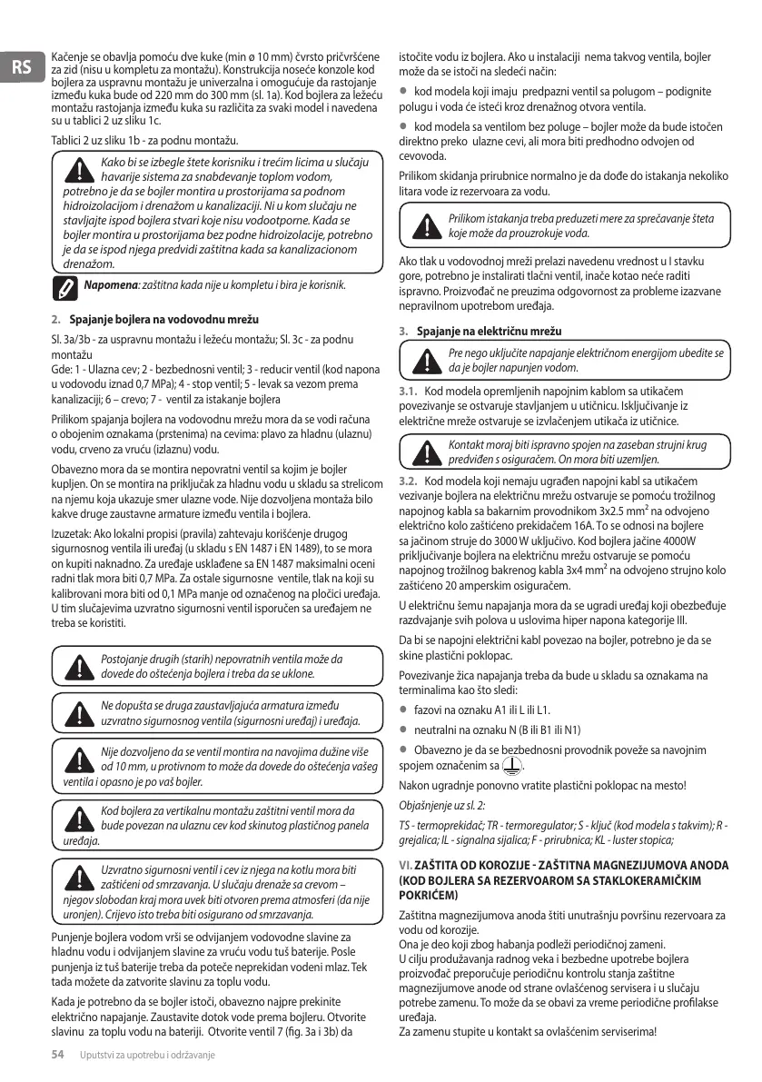 54 Uputstvi za upotrebu i održavanje