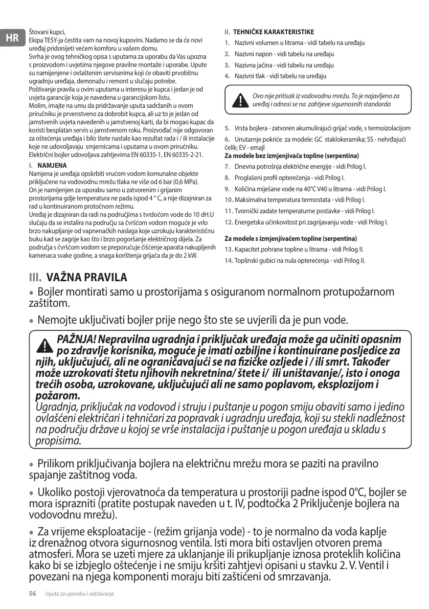 Električni bojler udovoljava zahtjevima EN 60335-1, EN 60335-2-21.