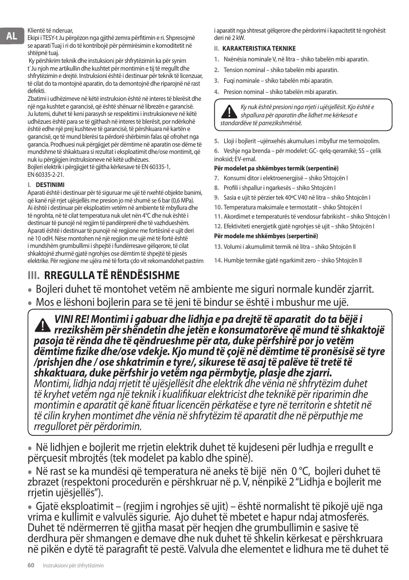 4. Presion nominal – shiko tabelën mbi aparatin.
