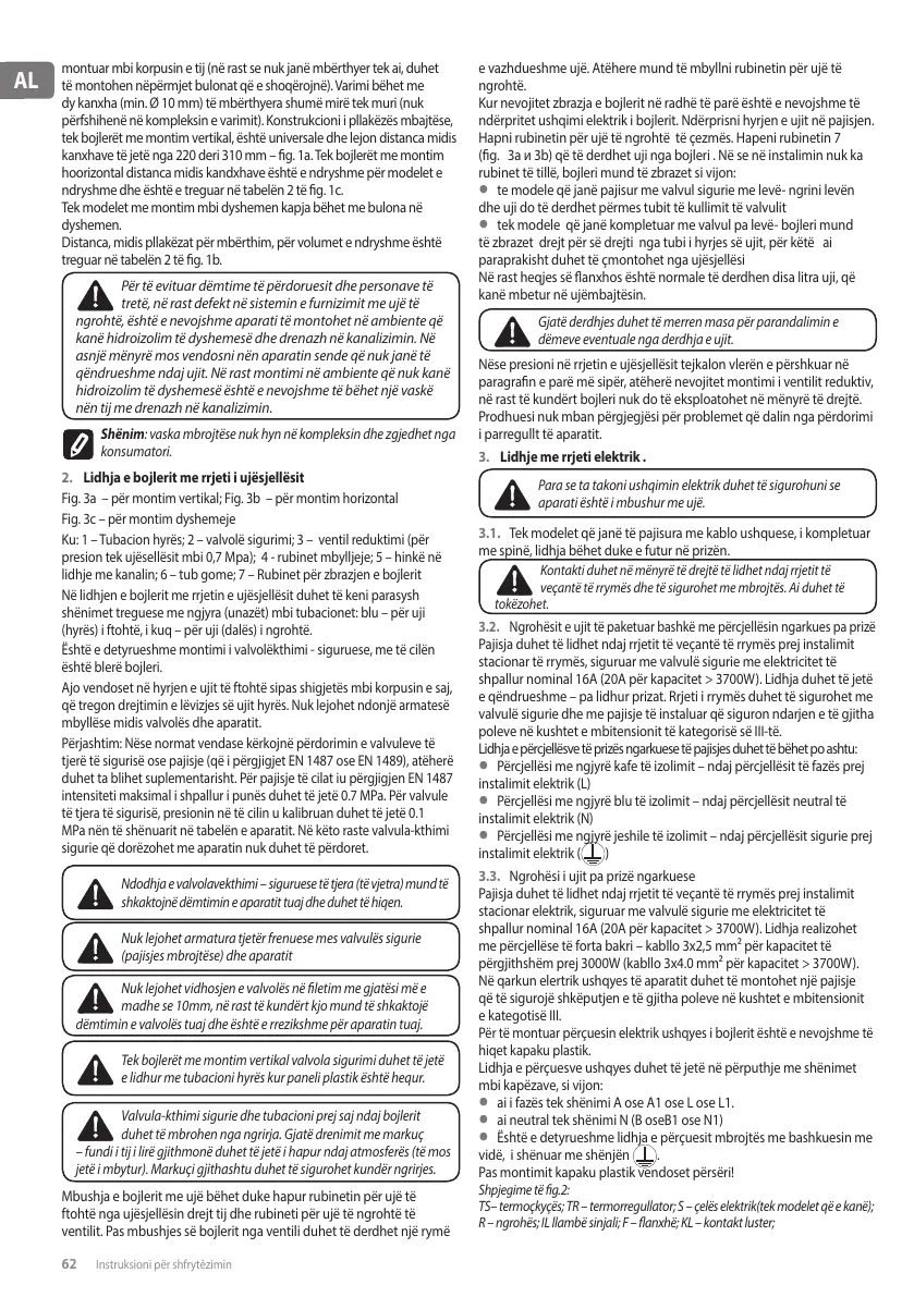 në rast të kundërt bojleri nuk do të eksploatohet në mënyrë të drejtë.