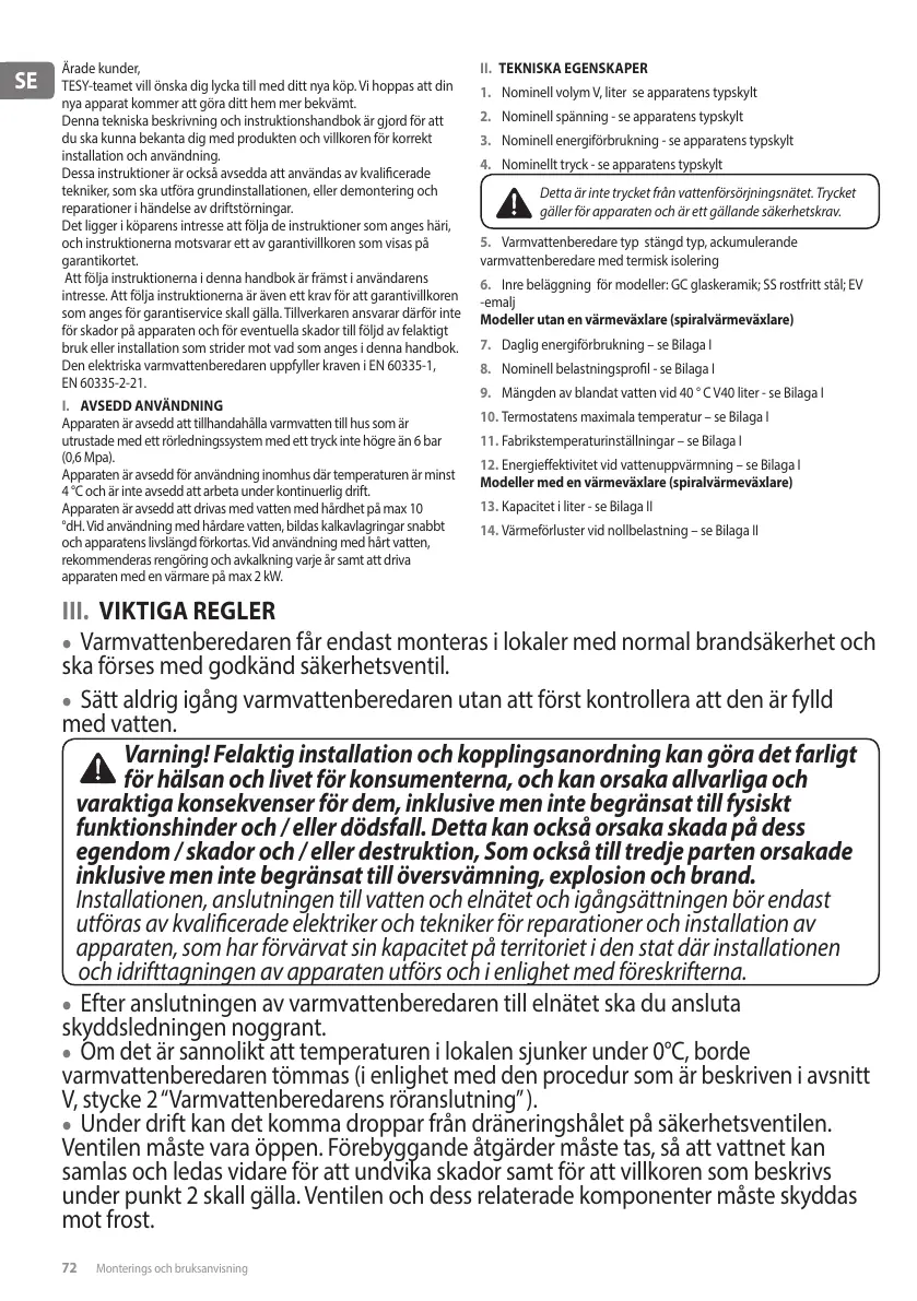 72 Monterings och bruksanvisning