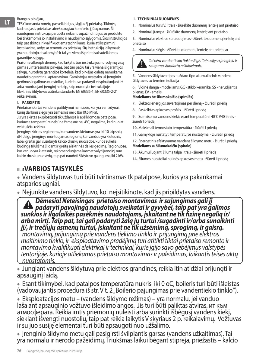 bei tinkamomis jo instaliavimo ir naudojimo sąlygomis. Šios instrukcijos