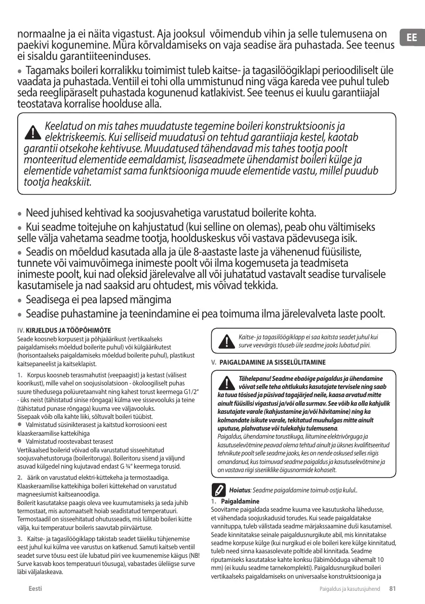 Keelatud on mis tahes muudatuste tegemine boileri konstruktsioonis ja