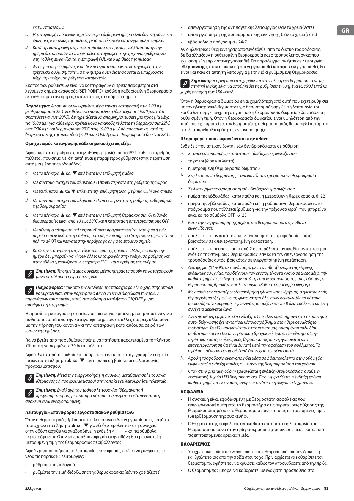 Οδηγίε χρήση και αποθήκευση Πάνελ - Θεροποπού 83Ελληνικά