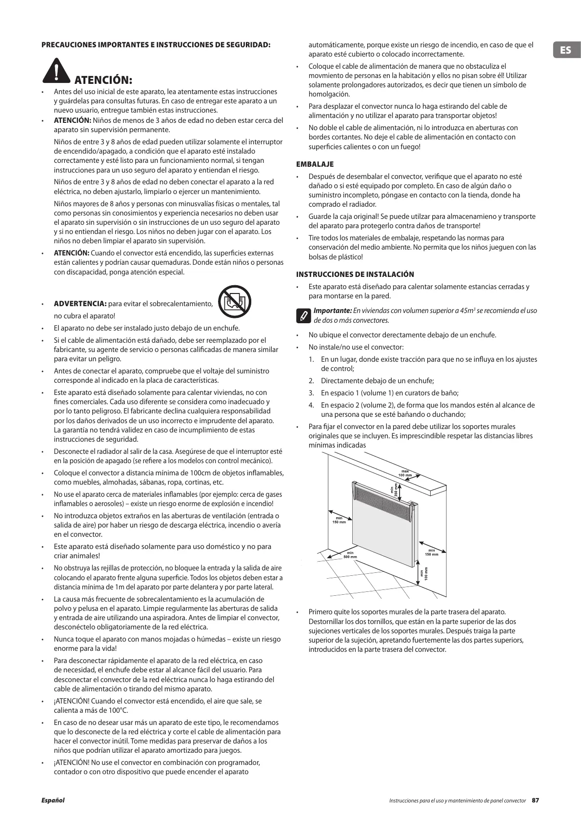 Instrucciones para el uso y mantenimiento de panel convector 87Español