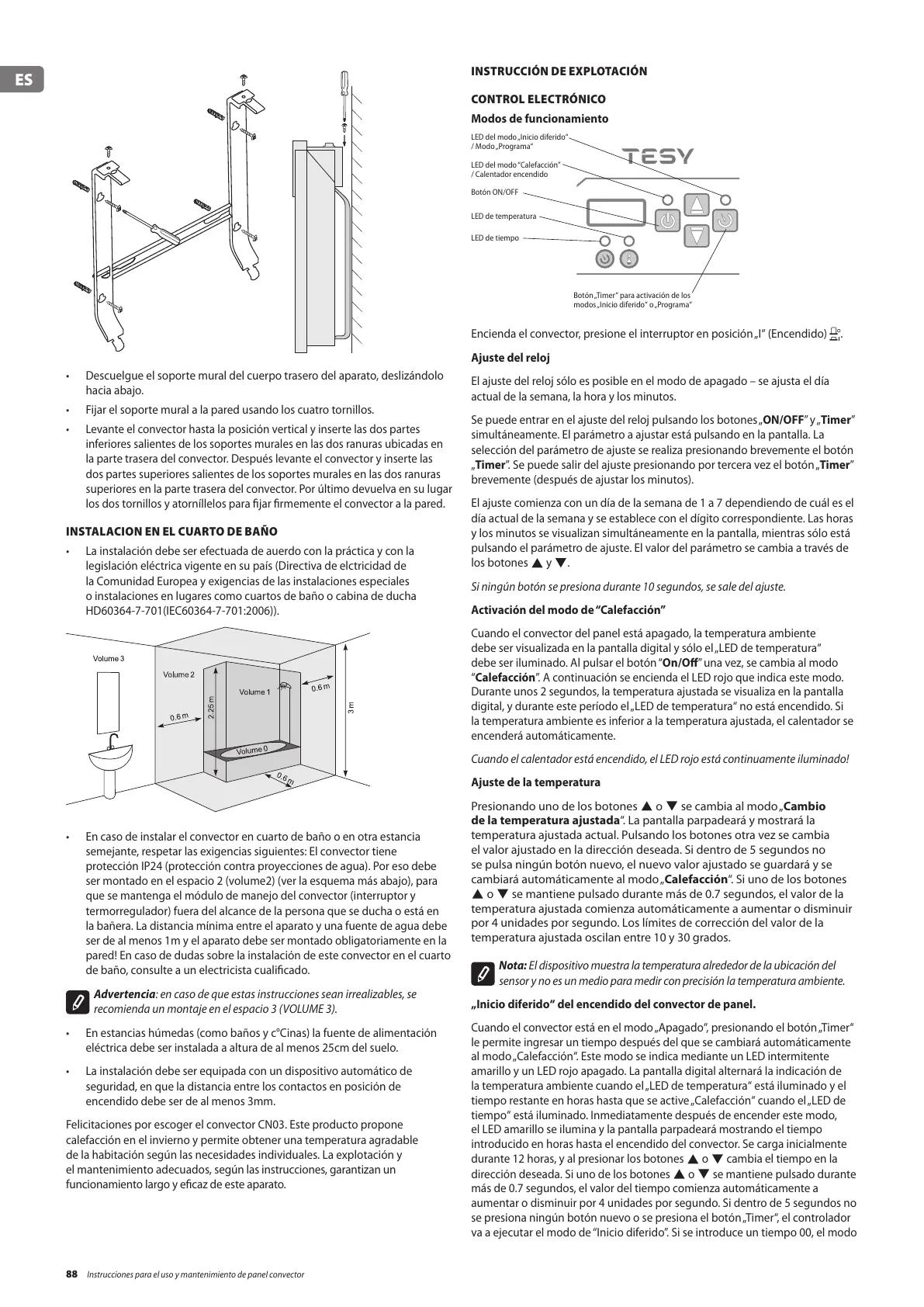 88 Instrucciones para el uso y mantenimiento de panel convector
