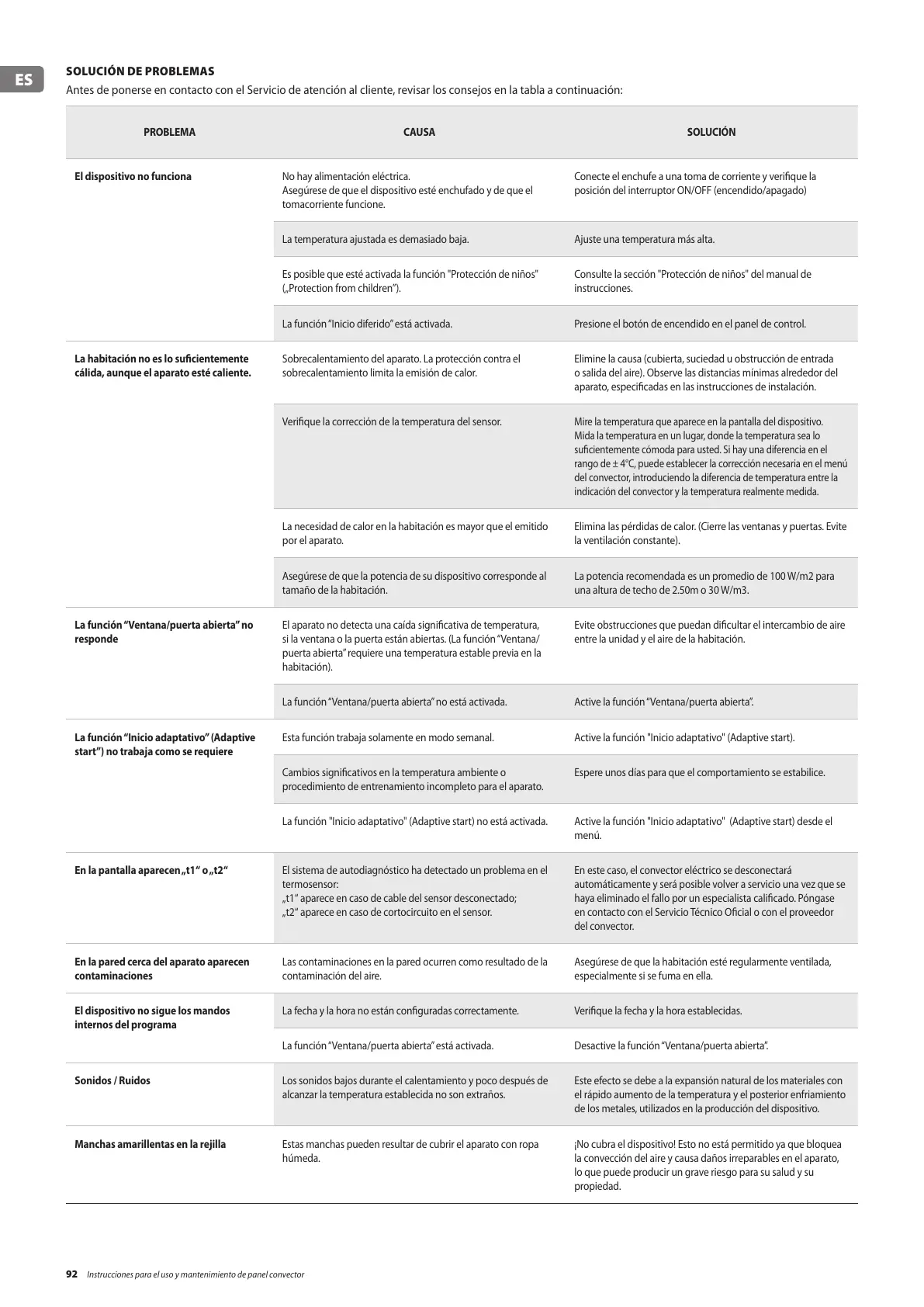 92 Instrucciones para el uso y mantenimiento de panel convector
