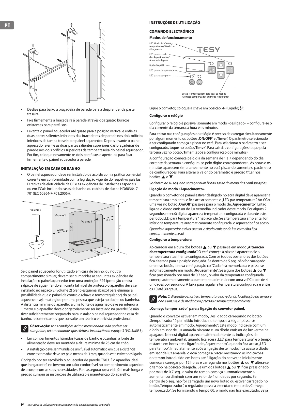 94 Instruções de utilização e armazenamento do painel aquecedor de parede