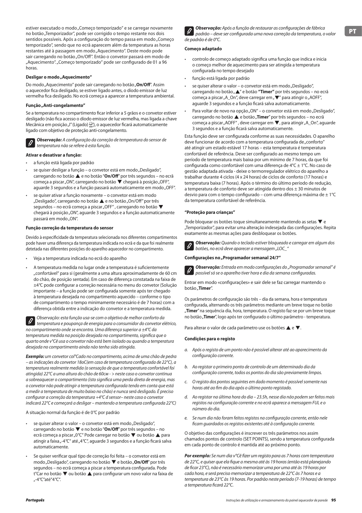 Instruções de utilização e armazenamento do painel aquecedor de parede 95Português
