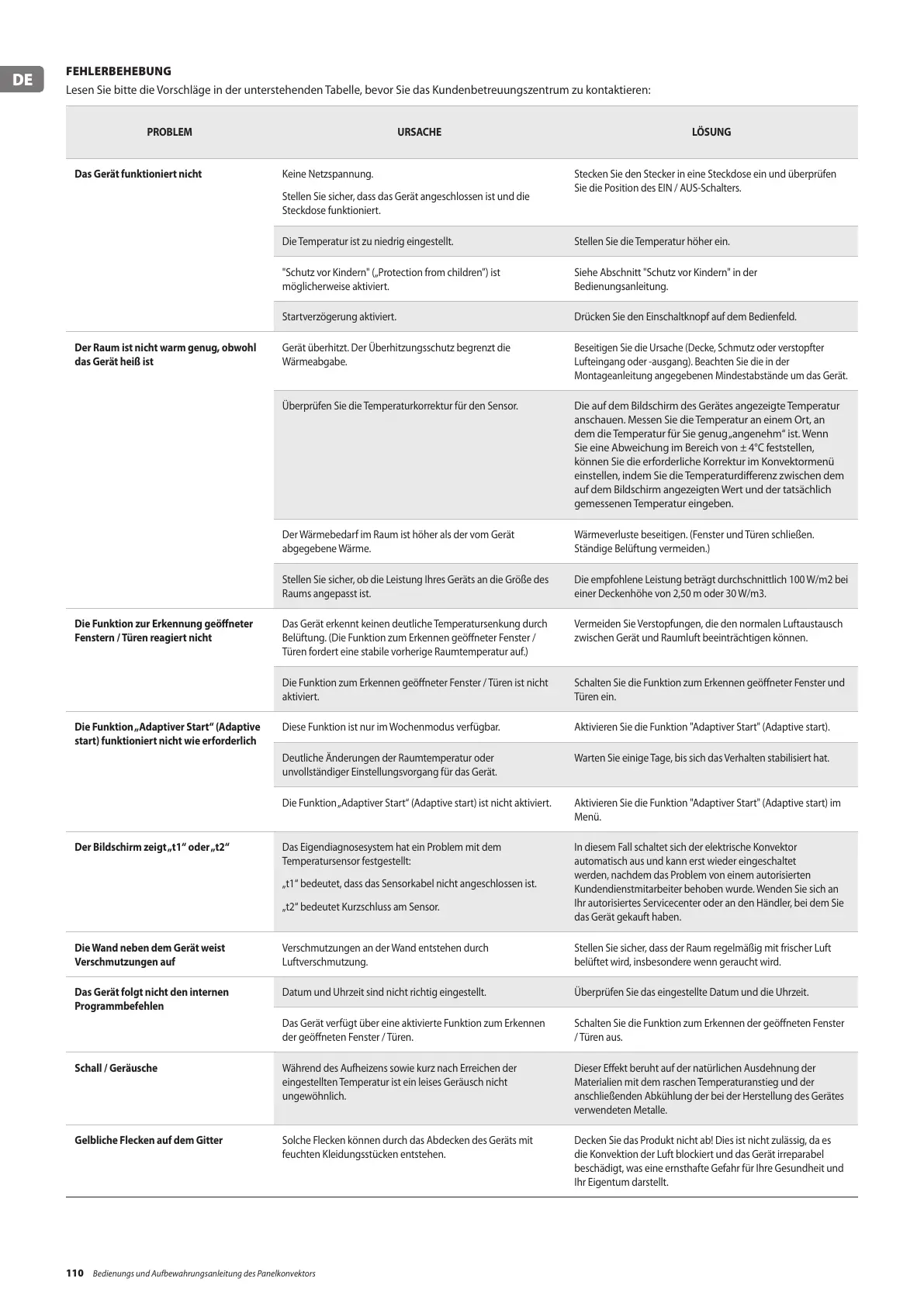 110 Bedienungs und Aufbewahrungsanleitung des Panelkonvektors